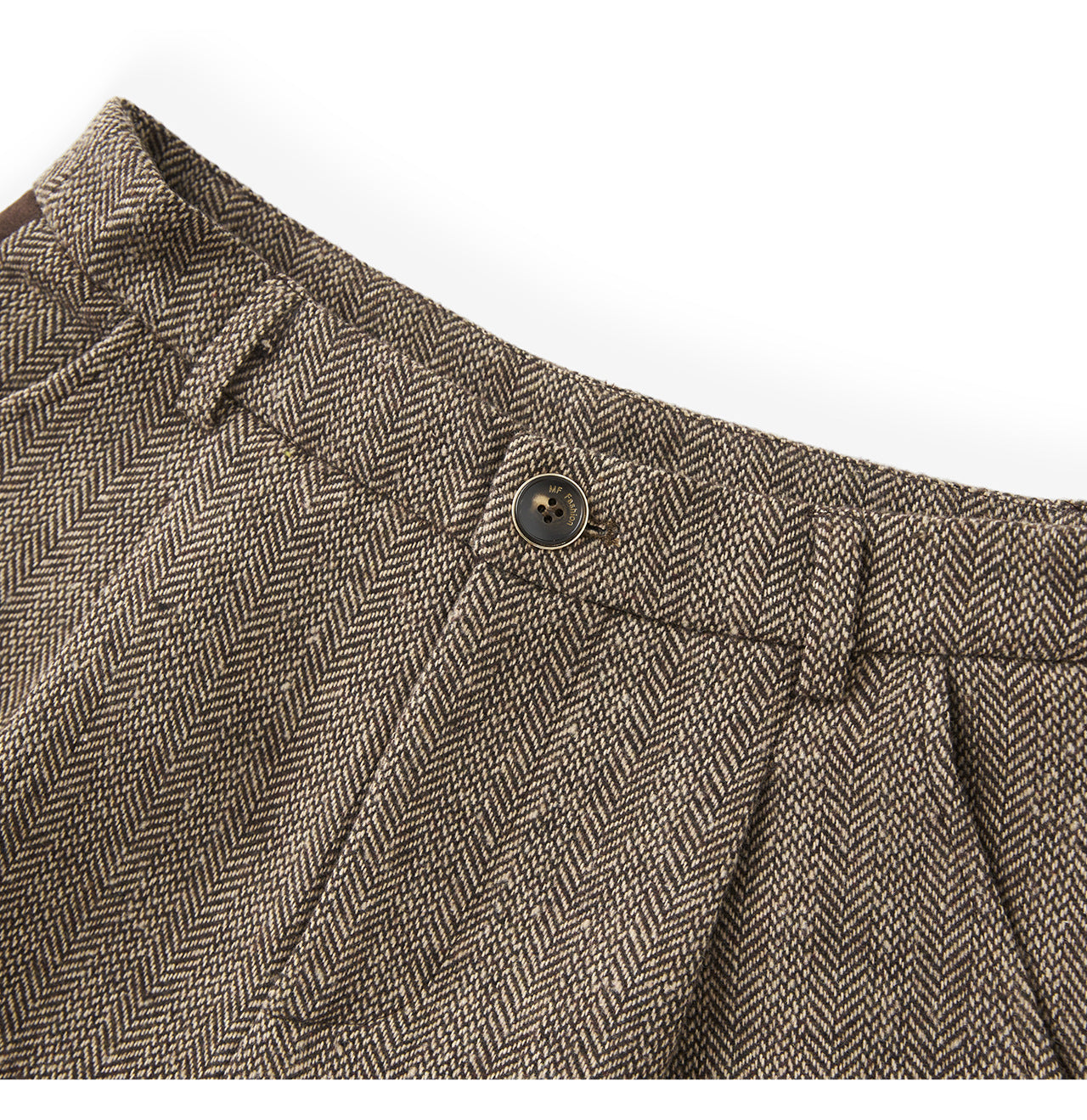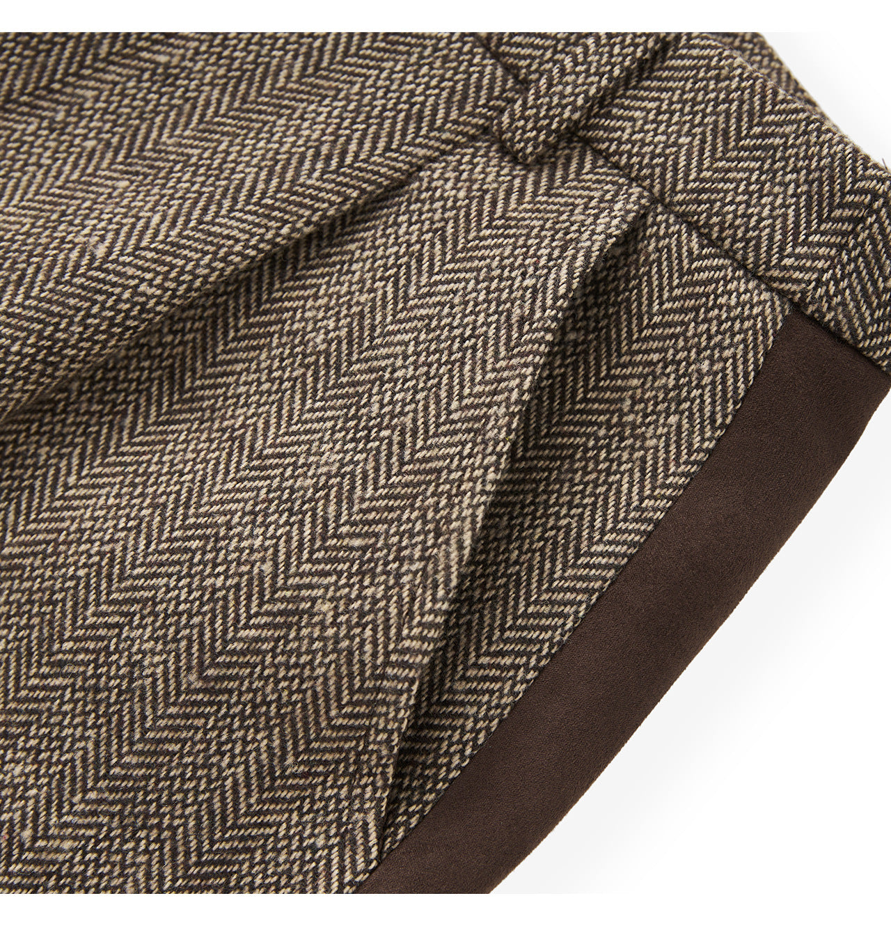 This suit comes from an independent designer studio, with a unique patchwork technique and retro woolen material at its core, breaking the boundaries of traditional formal wear. The neat cut of the waistcoat contrasts ingeniously with the casual silhouette of the shorts, combining a sense of formality with street style. It is a must-have item in the wardrobe of niche enthusiasts.